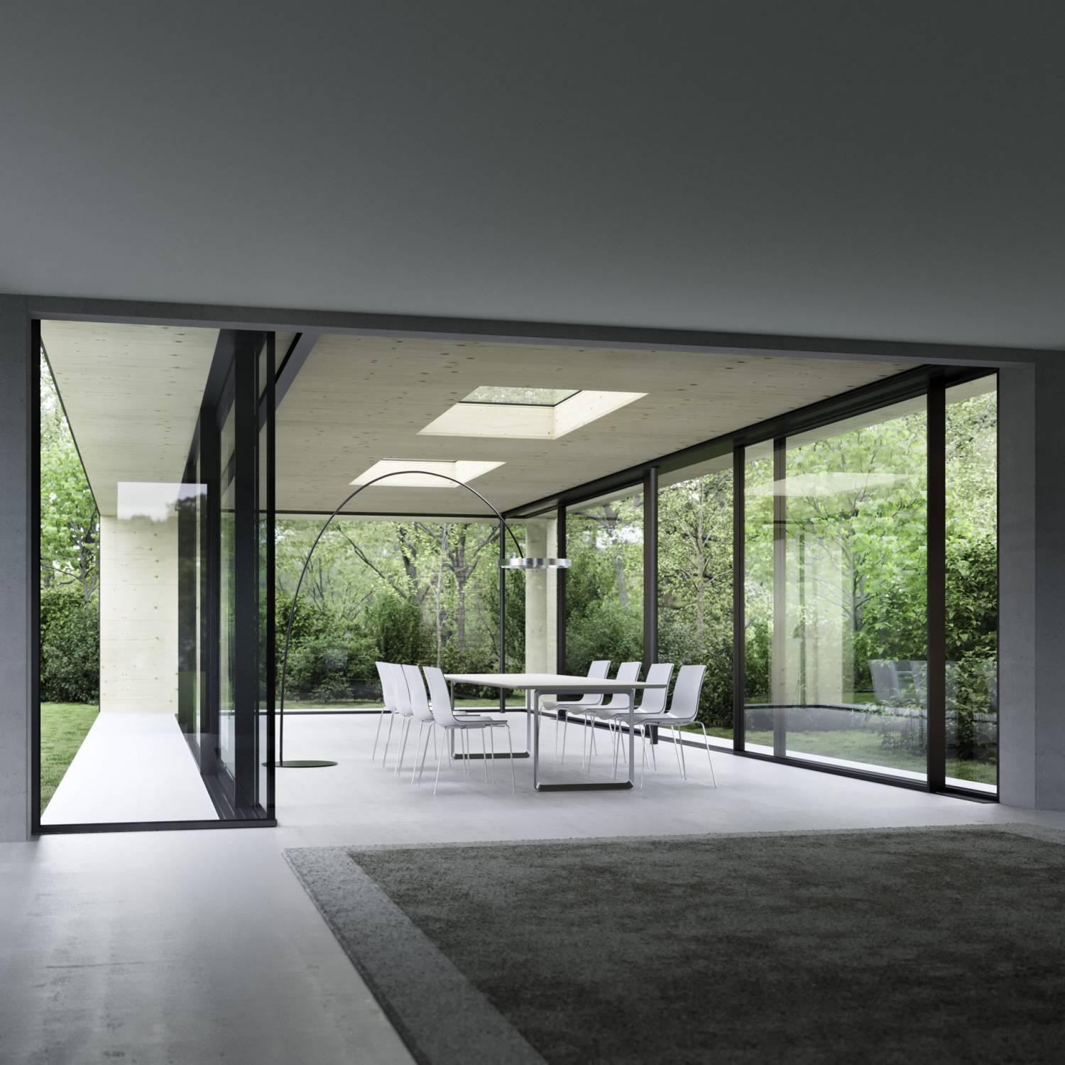 En complément, pour la fermeture intégrale d'une extension de maison tout en verre, vous créez votre propre design sur-mesure en fonction de votre choix de baies vitrées en accordéon ou de portes coulissantes vitrées minimalistes extra-larges. Ainsi, elles vous offriront de nombreuses possibilités pour un intérieur transparent.