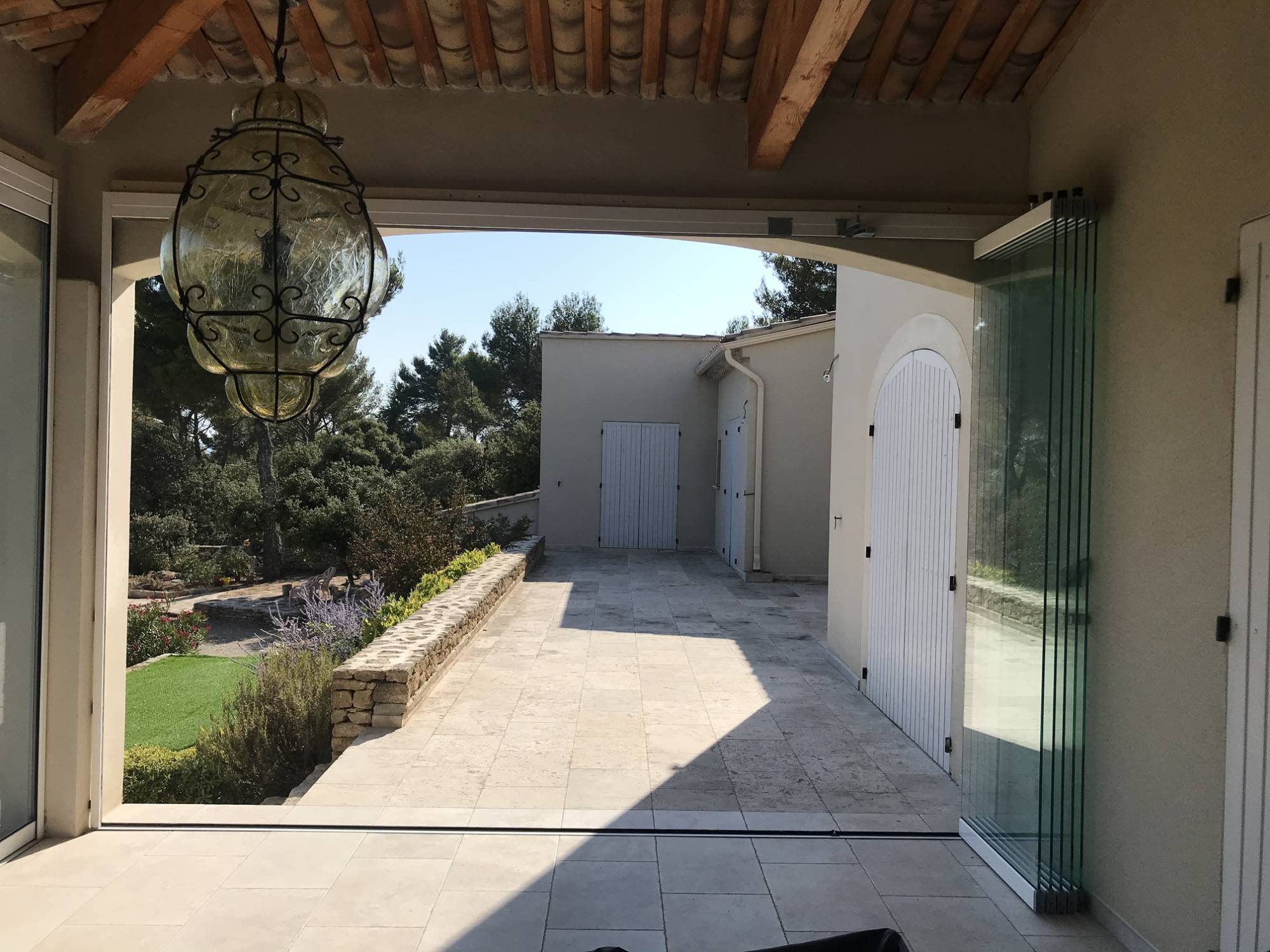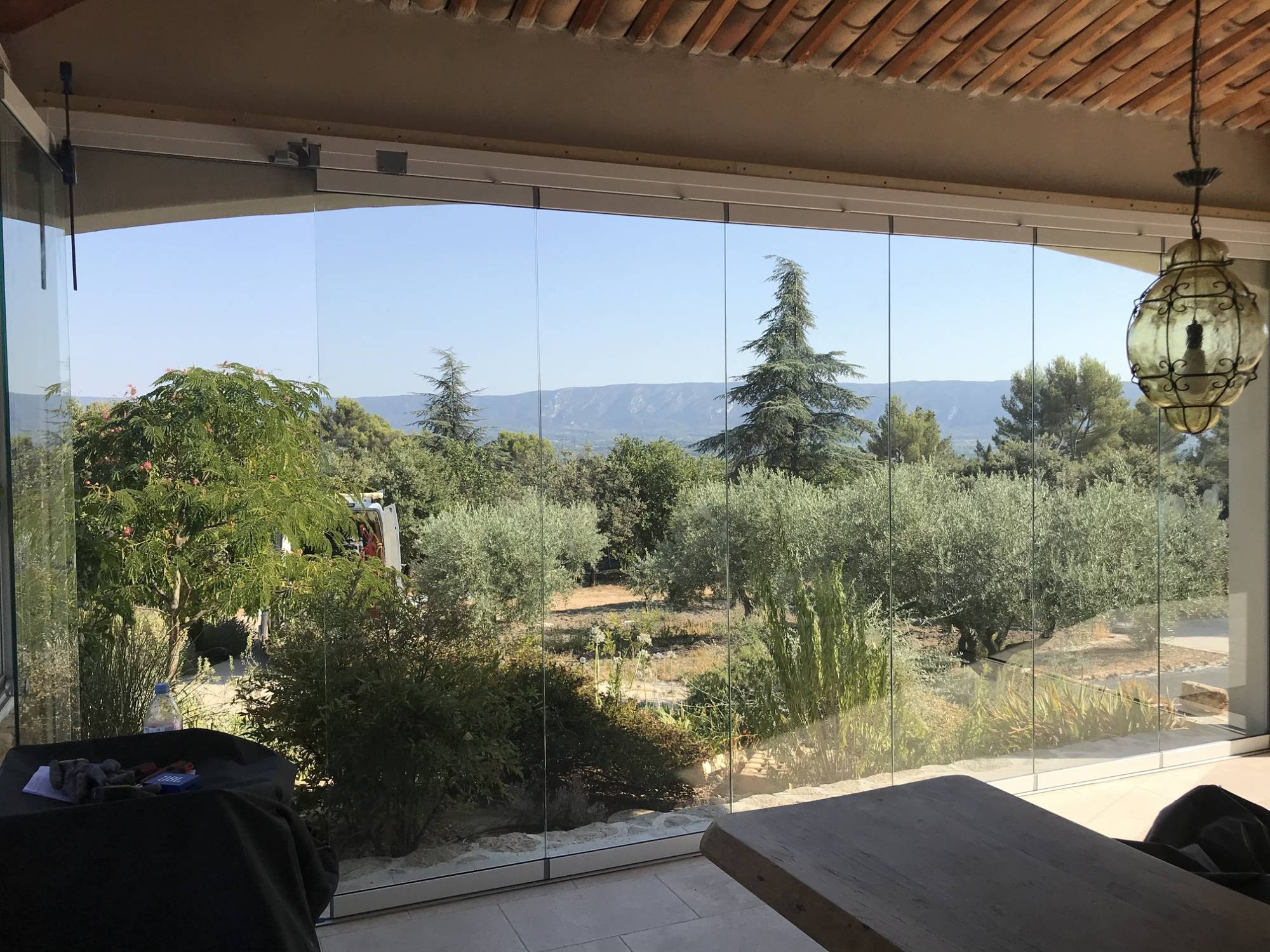 Nos clients fidèles nous ont fait part de leur nouveau projet sur leur villa située près de Lagnes (Vaucluse). Ils souhaitaient fermer leur terrasse couverte pour faire en sorte de créer un patio afin de pouvoir profiter de la superbe vue sur les Alpilles depuis cette terrasse.