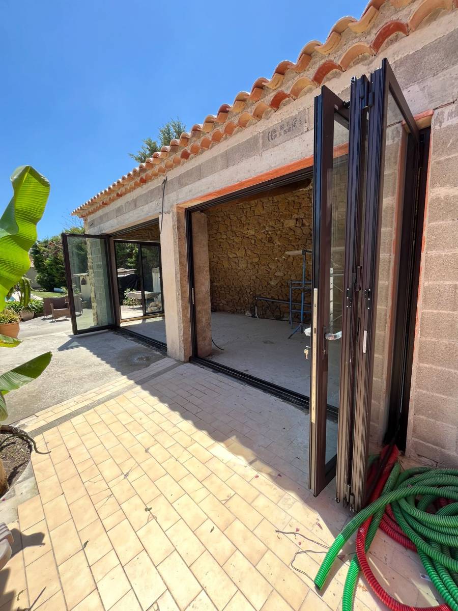 GDM Menuiseries est fière de présenter la pose de 3 baies accordéon vitrées 3 vantaux en aluminium sur Salon de Provence.