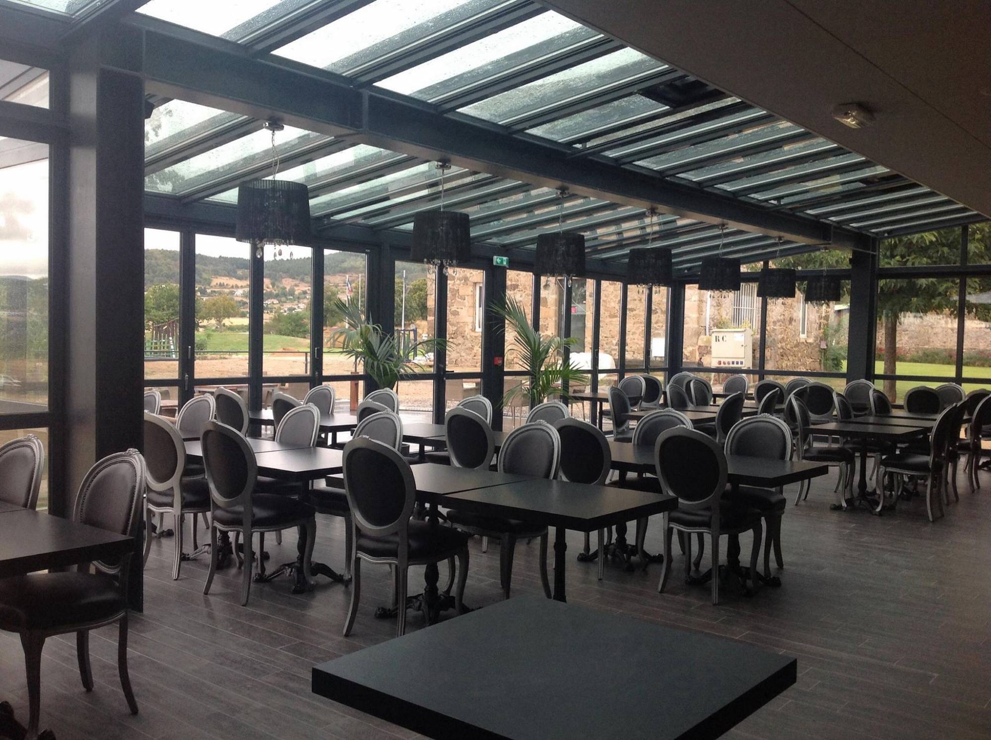 Cette vérandaavec toiture vitrée lui permet d'agrandir son espace de restauration et ainsi permet à ses clients de bénéficier du confort chaleureux de cet espace et de dîner sous les étoiles.